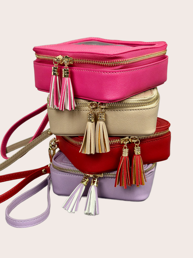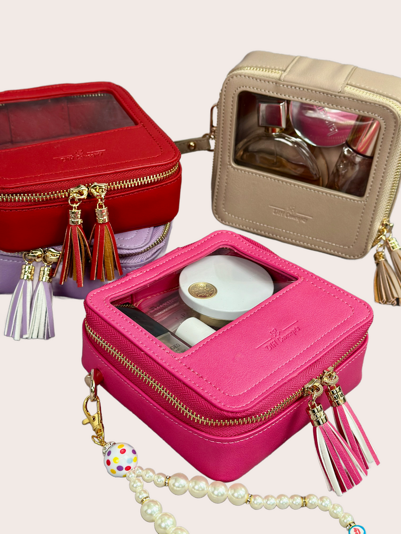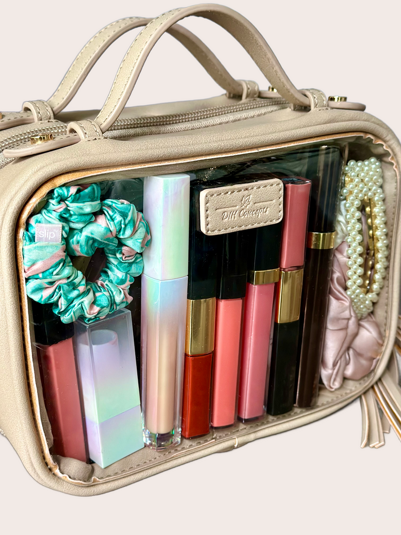 Wide range of clear makeup bags, crossbody bags, travel bags, handmade bag charms/keychains & jewelry at DIH Concepts, the premier online bag store.