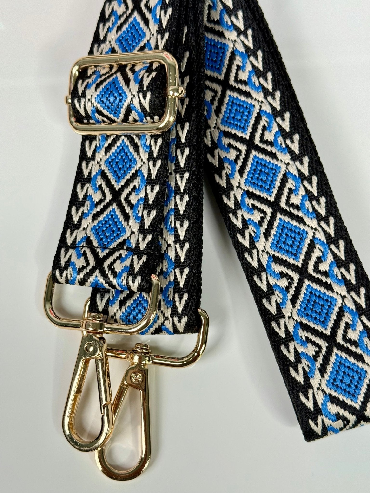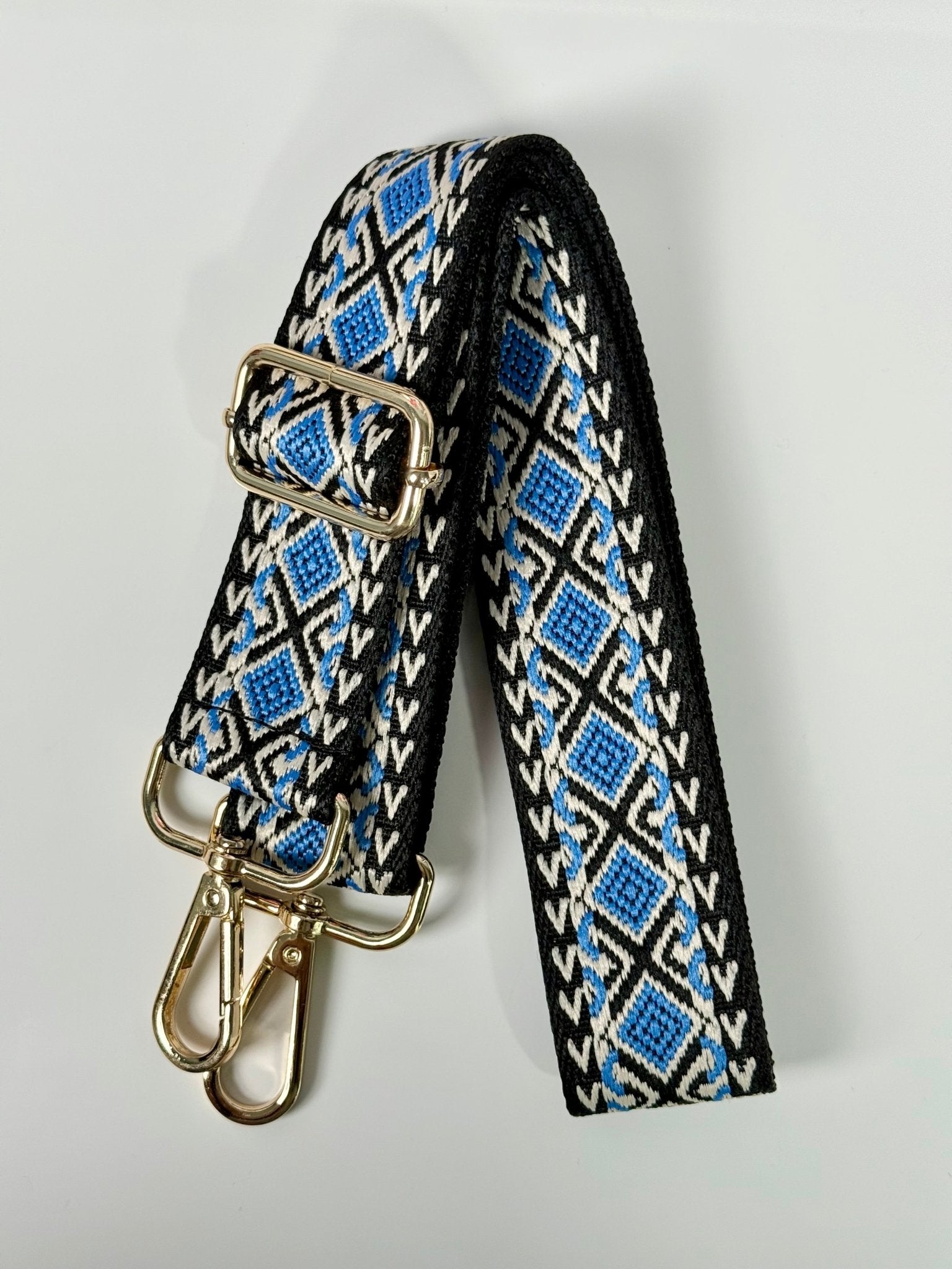 Handcrafted with intricate geometric woven patterns and finished with premium gold hardware, this strap brings together comfort, durability, and signature boho style. Its adjustable length makes it perfect for styling with your favorite crossbody, tote, or travel bag — instantly refreshing your look with artisanal elegance.