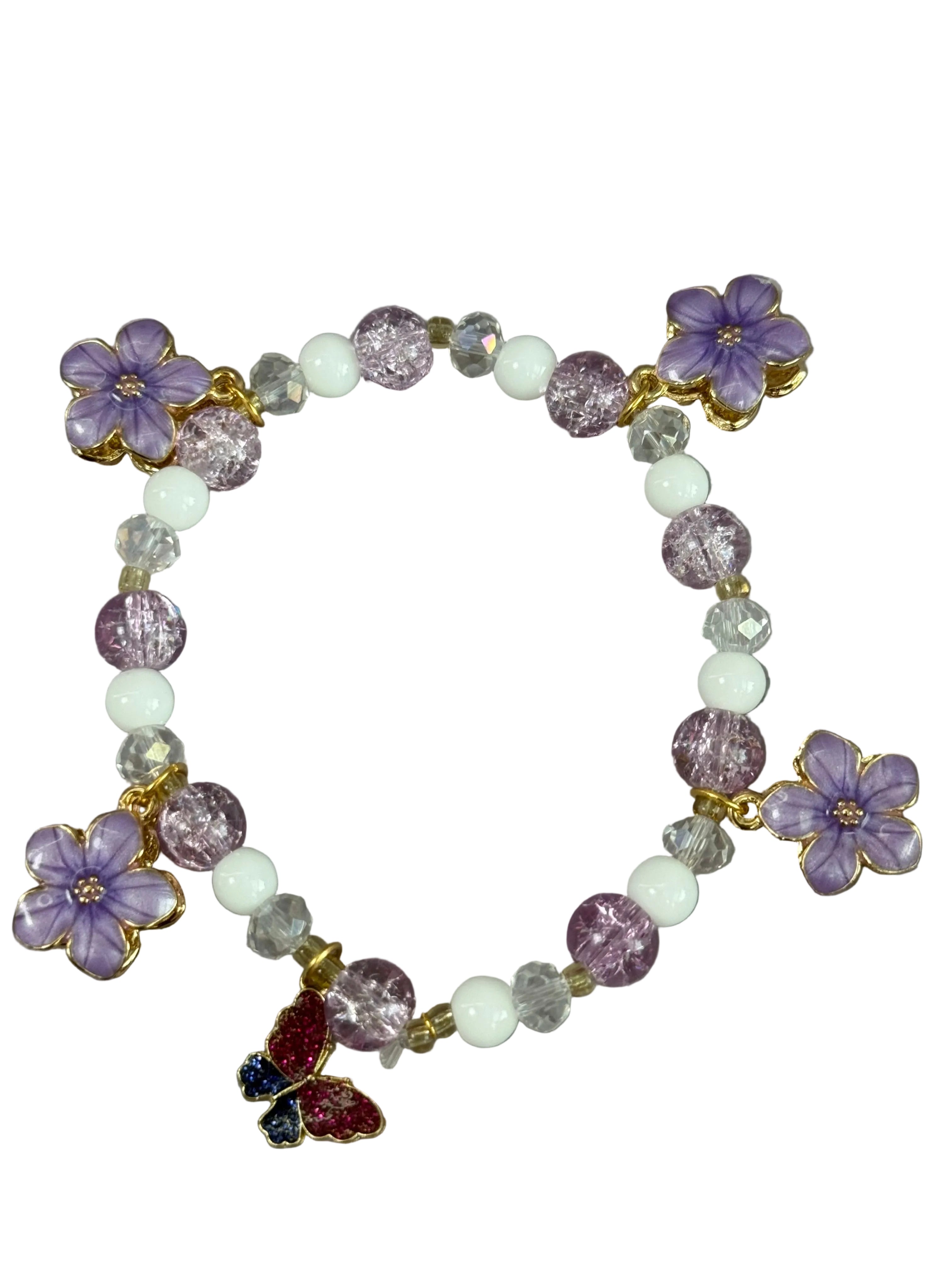Embrace the beauty of spring all year long with the Cherry Blossom Charm Bracelet by DIH Concepts. Handmade with care, this delicate bracelet features sparkling beads paired with charming cherry blossom accents and a dainty butterfly for a touch of whimsy.