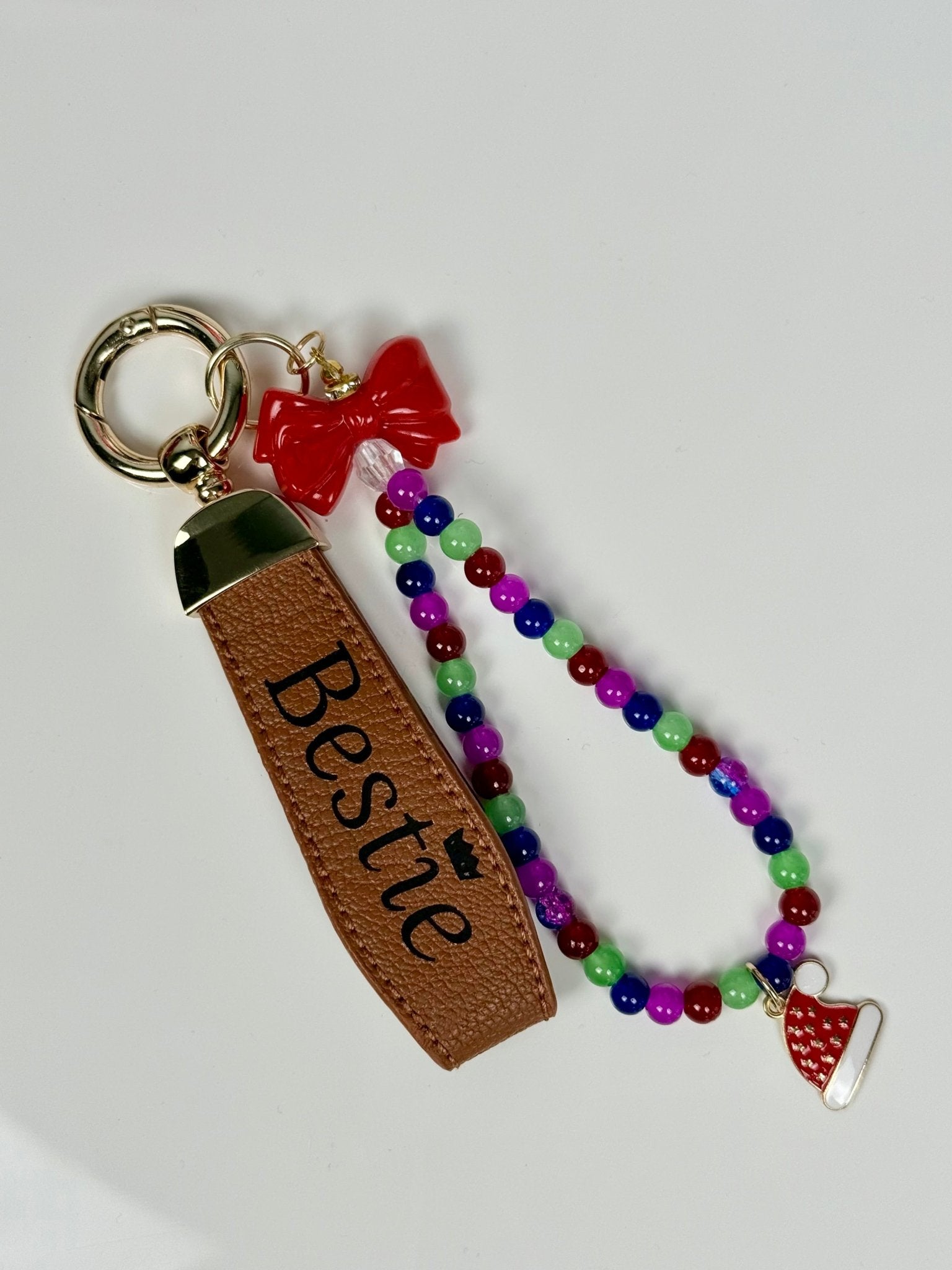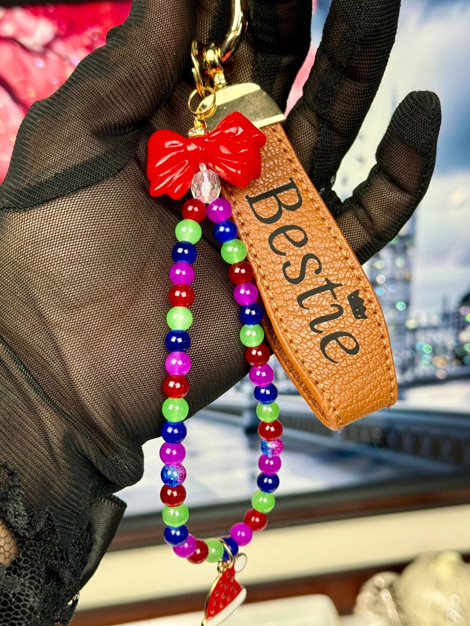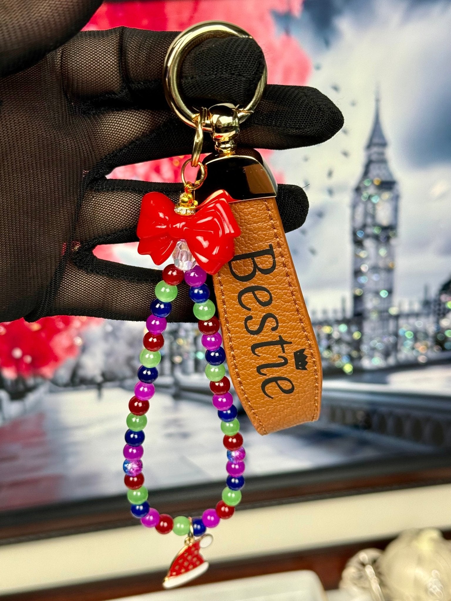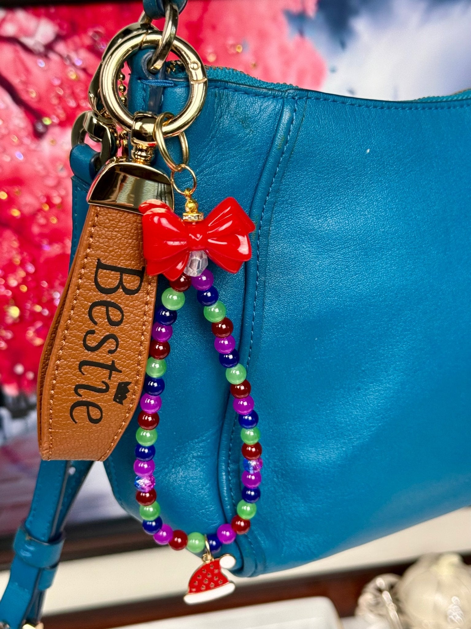Our handmade keychains are thoughtfully designed to add a personal, stylish touch to your everyday essentials. Each piece is crafted with care using high-quality beads, charms, and durable hardware. Whether you're looking for a gift or a cute accessory, these keychains stand out with their playful charm and functional flair.