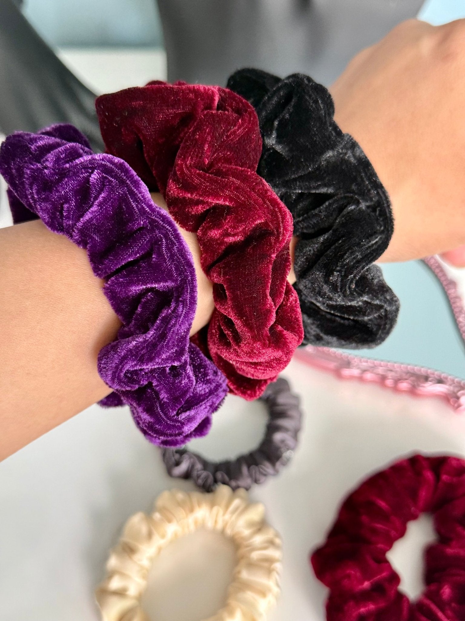 Designed to be both fashionable and functional, these scrunchies provide a secure grip without pulling or creasing your hair. Whether you're dressing up or keeping it casual, our velvet hair ties bring softness and sophistication to your accessory game.