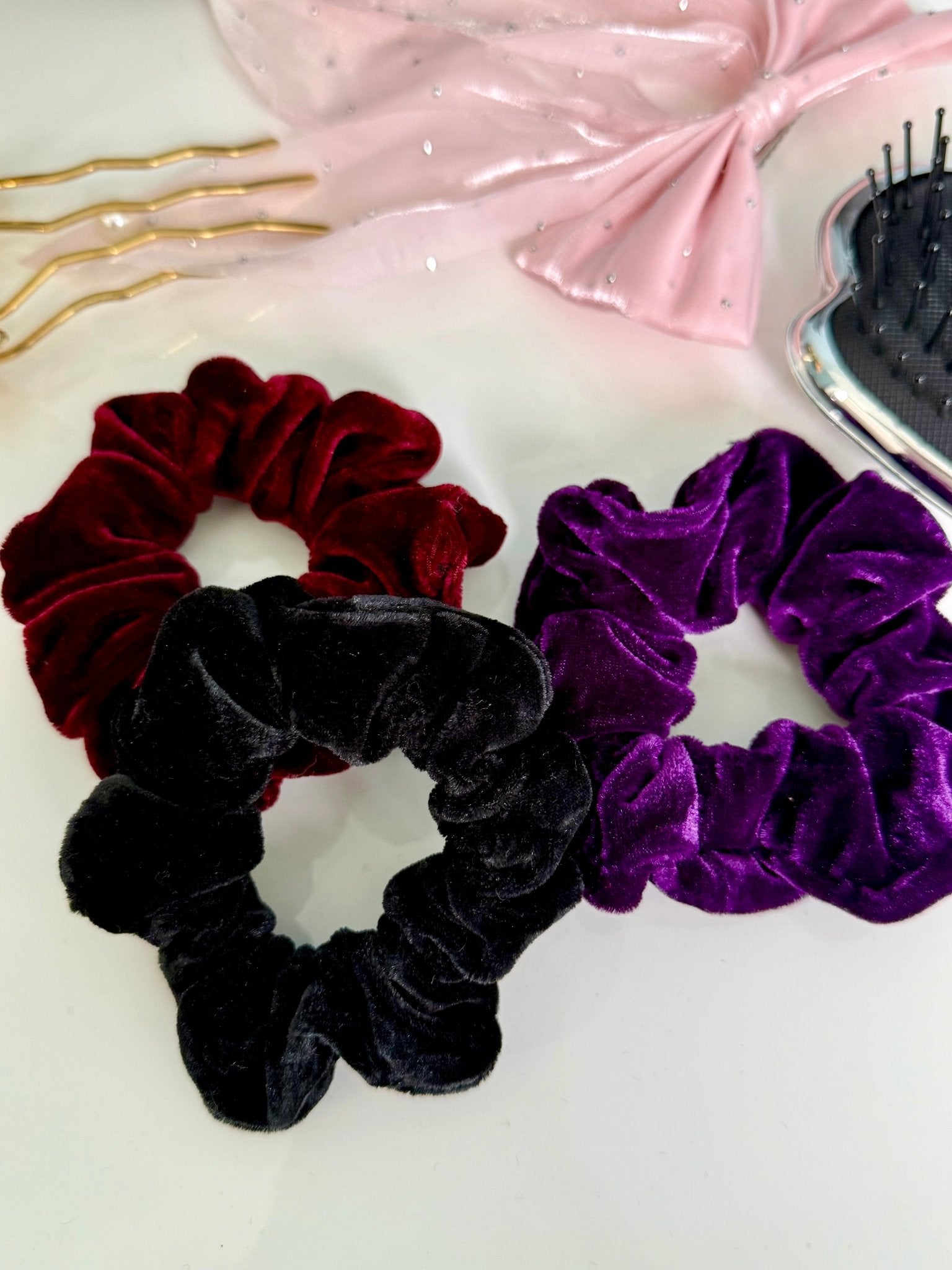 Luxe Velvet Scrunchies – Soft, Gentle Hold Hair Ties (Set of 3)