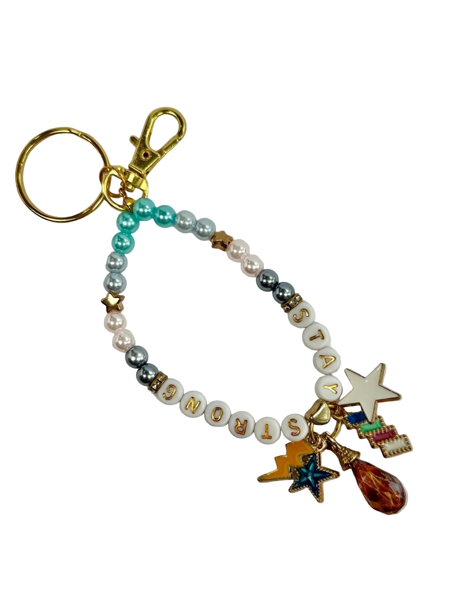 We use a variety of premium materials including glass beads, acrylic charms, resin accents, strong lobster clasps, and key rings. All our materials are chosen to be stylish, lightweight, and long-lasting.